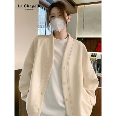 拉夏贝尔外套女春秋款2025新款大码女装开衫纯色卫衣v领上衣春装J